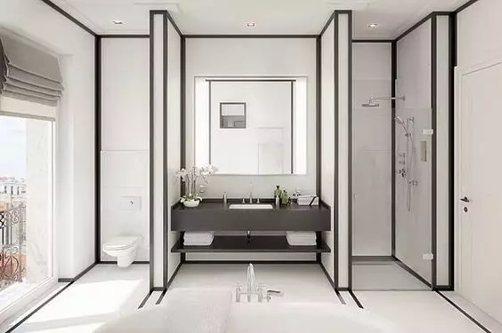 當然,采用這樣的設計形式對衛生間的規格要求也比較高,前提就是,你家有足夠大的衛浴空間......