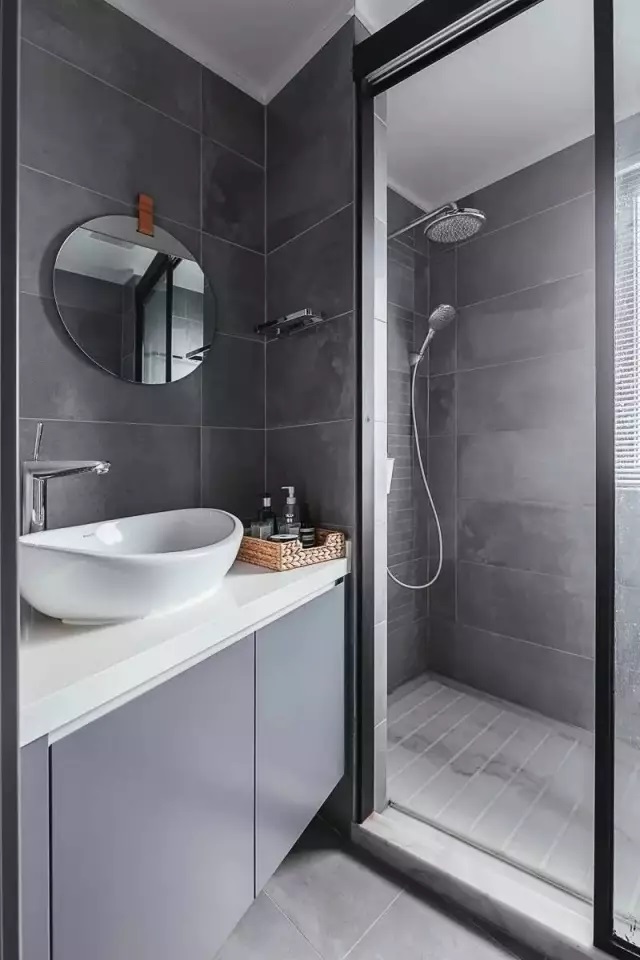 隔斷材料一般選擇具有視覺擴容效果的玻璃材質,既可防水又能阻霧,現代感也非常強。