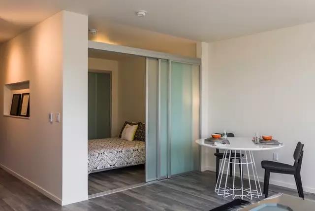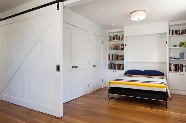 常規的小戶型在做臥室與客廳的隔斷時,如果按照封閉式的開關門設計,空間更容易顯狹小,一些采光不好的戶型,還容易遮擋采光。