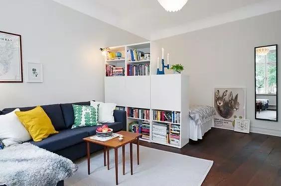 如果要選一種最經濟最快捷的方式,那麽用櫃子做隔斷絕對是最佳的選擇。如果覺得櫃子太空,也可以在上加一層玻璃。