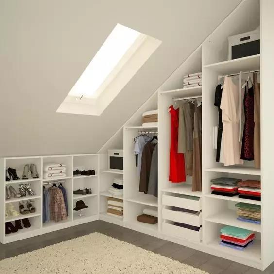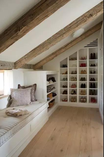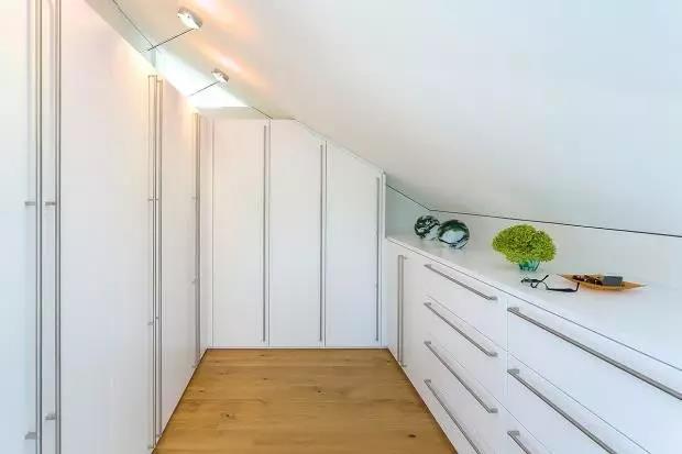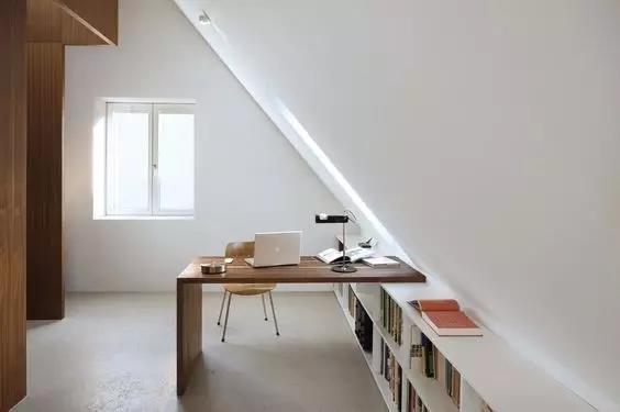 因為受到層高和形狀的限製,閣樓收納一般都在牆上尋找切入點,其中以嵌入式設計最為常見。