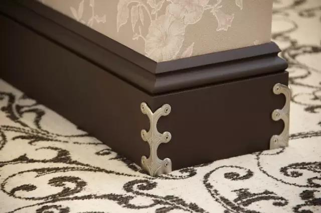 美觀性:如果你家貼了深色係的花紋壁紙,那麽純色的踢腳線會非常適合你的搭配。整體深色的牆麵提升房間優雅的格調,素色的踢腳線讓人內心感覺平和溫順。