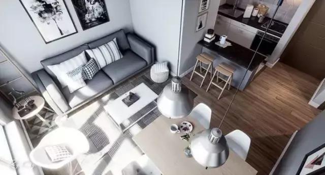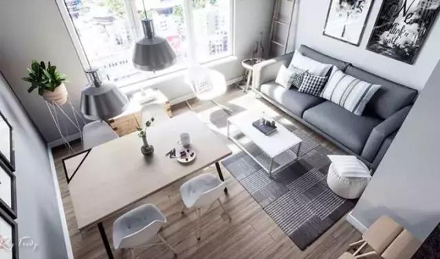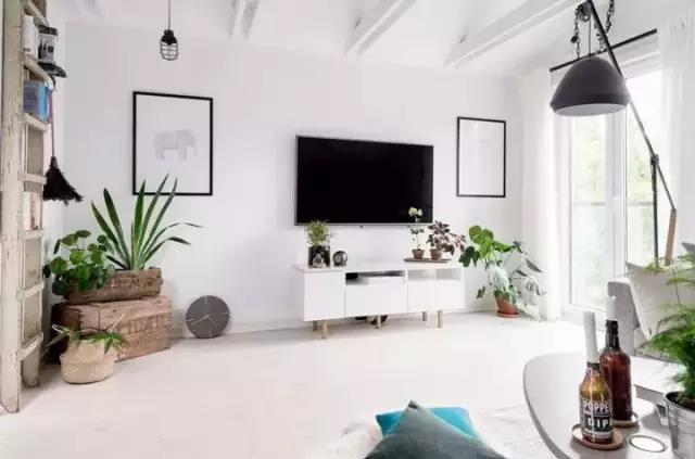 北歐風一貫擅長軟裝,所以在硬裝這塊大多都是非常簡潔的,就是四麵白牆,吊頂基本上也不做,這套案例也是如此,標準的小戶型北歐風,通過軟裝使家居顯得非常有生活感,但又不會顯得散亂無章。掛畫、綠植加上灰色係軟裝主色,顯得很小清新。
