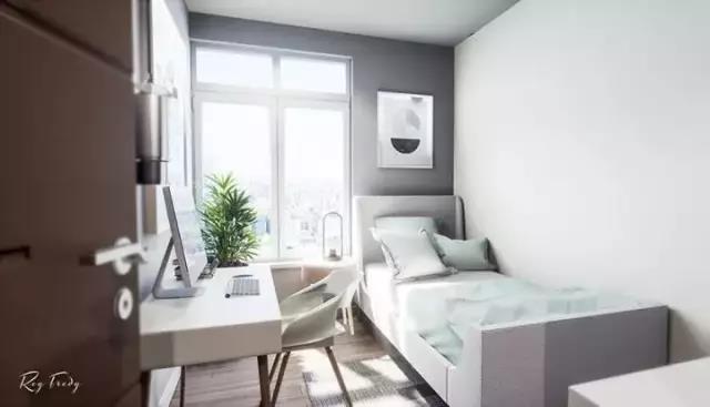 這種設計的初衷是讓你在裏麵住30年也會不膩,利用了大麵積灰色和白色,從封麵到地板,甚至家具都采用了此色係,視覺感非常統一,有質感。挑選了一些亮色做為點綴,比如小的皮坐椅,增加了整個空間的溫度,兒童房的設計也非常到位,簡潔清爽,容易塑造和培養孩子幹淨整潔的習慣